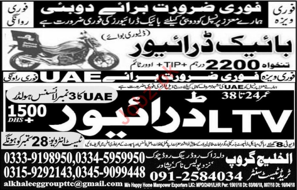 Bike Driver & LTV Driver Jobs 2018 in UAE