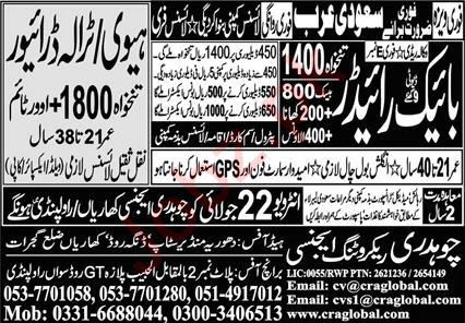 Bike Rider And HTV Driver Jobs 2024 In KSA