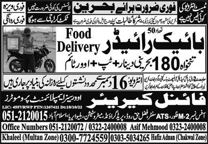Apply as per details in job advertisement. Login to view further details of how to apply via https://www.jobz.pk online.
