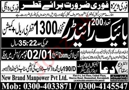 Vacant posts including bike rider are announced in Dua Technical Trade Test & Training Center Qatar, qatar Qatar as per 29 October 2023 advertisement in daily Express Newspaper. Preferred Education is Matric etc.