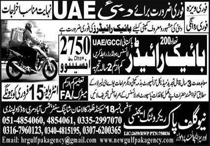 New Gulf Pak Recruitment Agency invites applications for job positions advertised in daily Express dated 10 February 2022 for following vacancies in Dubai Dubai.