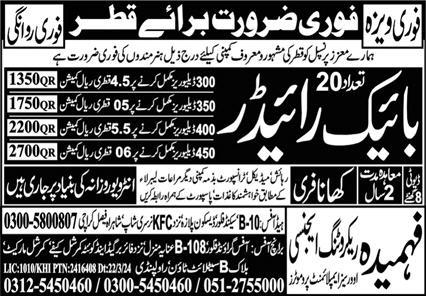 Fehmida Recruiting Agency Overseas Employment Promoters invites applications for job positions advertised in daily Express dated 4 April 2024 for following vacancies in Doha, doha Qatar.
