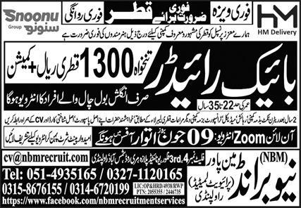 Vacant posts including rider and bike rider are announced in New Brand Manpower Doha, doha Qatar as per 7 June 2024 advertisement in daily Express Newspaper. Matric etc. educational qualification will be preferred.