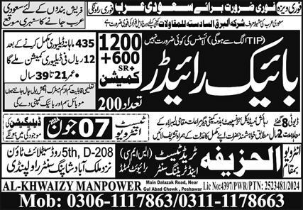 Al Huzaifa Trade Test & Training Centre is looking for candidates for following posts as per job advertisement published in daily Express Newspaper of June 7, 2024 for location Riyadh, dammam Saudi Arabia: