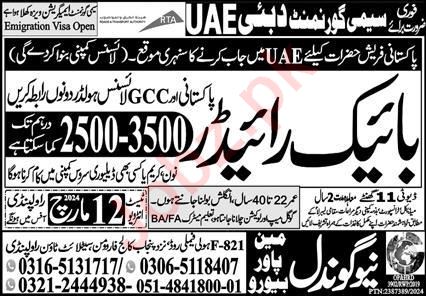 New Gondal Manpower Bureau UAE, dubai UAE invites applications from eligible candidates for the post of bike rider as per advertisement of March 10, 2024 published in daily Express Newspaper. Persons with Matric and Intermediate etc. education can apply.