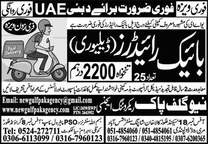 New Gulf Pak Recruiting Agency invites applications for job positions advertised in daily Express dated 5 July 2024 for following vacancies in UAE, dubai UAE.