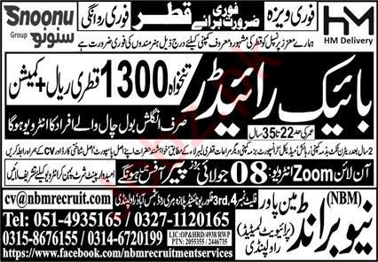 Vacant posts including bike rider are announced in New Brand Manpower Doha, doha Qatar as per 7 July 2024 advertisement in daily Express Newspaper. Candidates with Intermediate and Matric etc. educational background will be preferred.