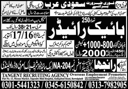 Tangent Recruiting Agency invites applications for job positions advertised in daily Express dated 15 October 2023 for following vacancies in Riyadh, riyadh Saudi Arabia.