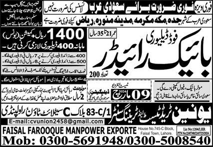 Latest Overseas jobs in Faisal Farooque Manpower Exporter in Sales and others can be applied till 9 March 2024 or as per closing date in newspaper ad. Read complete ad online to know how to apply on latest Faisal Farooque Manpower Exporter job opportunities. Facilities like medical, transport and accommodation may be provided.