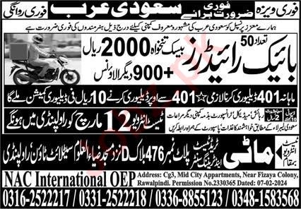 NAC International is looking for candidates for following posts as per job advertisement published in daily Express Newspaper of March 10, 2024 for location Riyadh, riyadh Saudi Arabia: