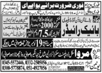 Apply as per details in job advertisement. Login to view further details of how to apply via https://www.jobz.pk online.