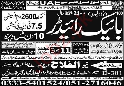 Peace & Protective Recruitment Agency is looking for candidates for following posts as per job advertisement published in daily Express Newspaper of June 9, 2024 for location Abu Dhabi, abu dhabi UAE: