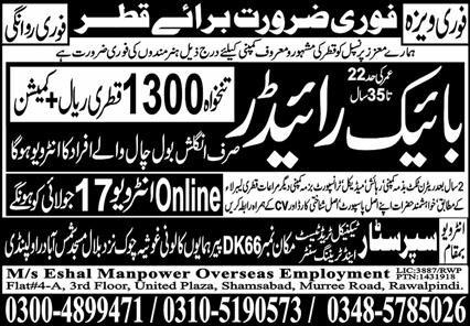 Super Star Technical Trade Test & Training Center is looking for candidates for following posts as per job advertisement published in daily Express Newspaper of July 14, 2023 for location Qatar, qatar Qatar: