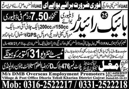 Bike Rider Jobs Open in UAE 2023