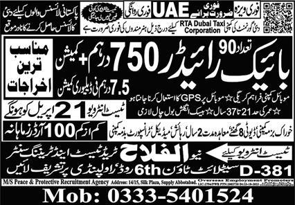 New Al Falah Trade Test & Training Center jobs advertisement dated about 17 April 2024 in daily Express Newspaper invites application for the vacant post of rider and bike rider in Sharjah, abu dhabi UAE. Educational qualifications required Matric etc.