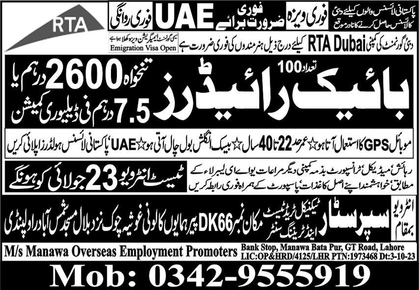 Vacant posts including bike rider and rider are announced in Super Star Technical Trade Test & Training Center Sharjah, abu dhabi UAE as per 4 July 2024 advertisement in daily Express Newspaper. Candidates with Matric etc. educational background will be preferred.