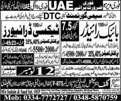 Bike Rider & Taxi Driver Jobs 2025 in UAE