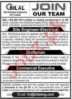 Vacancies in Bilal Switchgear Engineering Pvt Ltd Advertisement February 2020