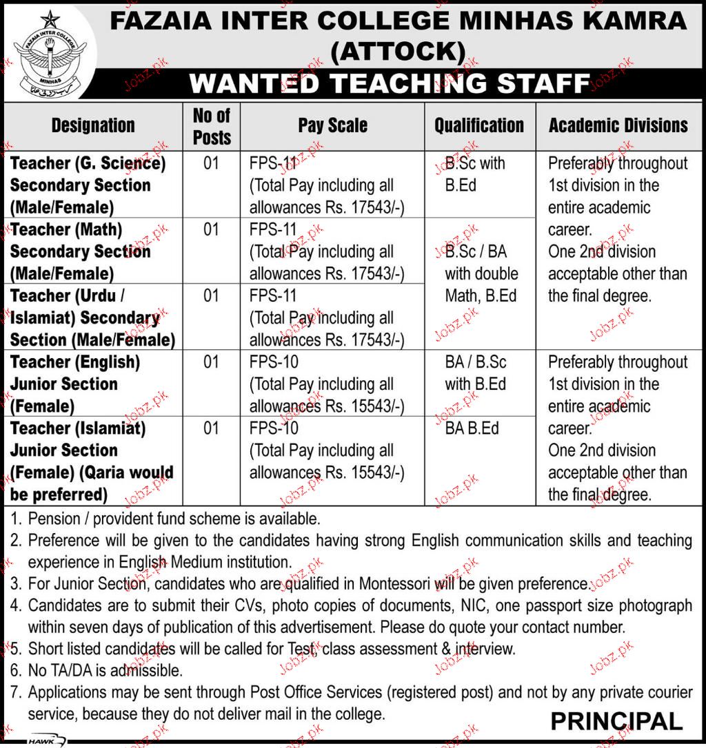 Bio Teachers Job In Fazaia Inter College Minhas Kamra