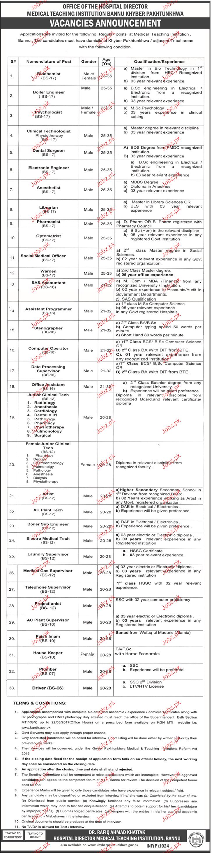 Apply as per details in job advertisement. Login to view further details of how to apply via https://www.jobz.pk online.