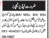 Apply as per details in job advertisement. Login to view further details of how to apply via https://www.jobz.pk online.