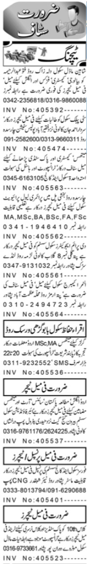 Private School Peshawar, peshawar Khyber Pakhtunkhwa KPK Pakistan invites applications from eligible candidates for the post of islamiat teacher, pakistan study teacher, pak studies teacher, biology teacher, urdu teacher, primary teacher, teacher, english teacher, physics teacher, principal, mathematics teacher, arts teacher, nursery teacher, chemistry teacher and female teacher as per advertisement of March 5, 2022 published in daily Aaj Newspaper. Bachelor and Master etc. educational qualification will be preferred.