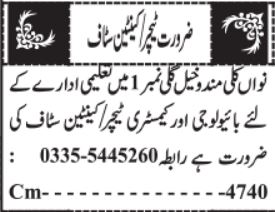 Biology Teacher & Chemistry Teacher Jobs 2022 In Quetta
