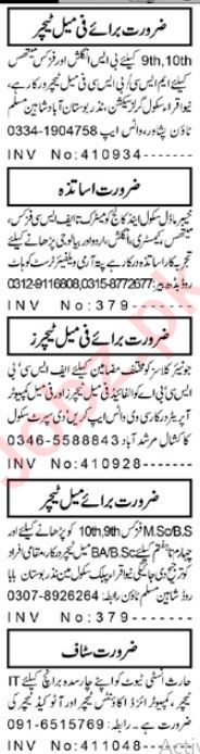 Private School is looking for candidates for following posts as per job advertisement published in daily Aaj Newspaper of August 4, 2022 for location Peshawar, peshawar Khyber Pakhtunkhwa KPK Pakistan: