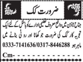 Biology Teacher & Cook Jobs 2022 In Quetta