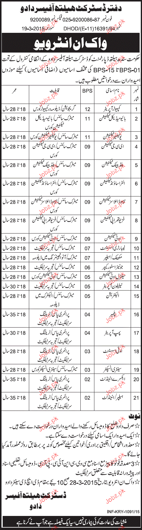 Latest Government Medical Posts Dadu 2025