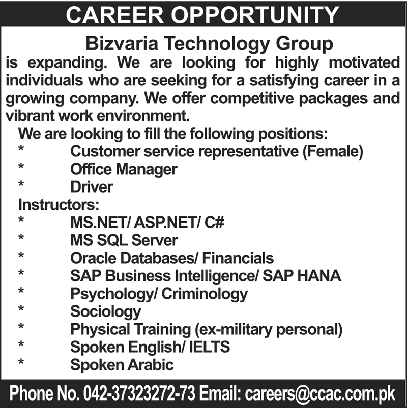 Latest Bizvaria Technology Group Management Posts Lahore 2025