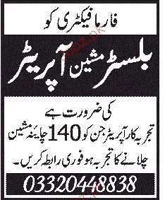 Apply as per details in job advertisement. Login to view further details of how to apply via https://www.jobz.pk online.