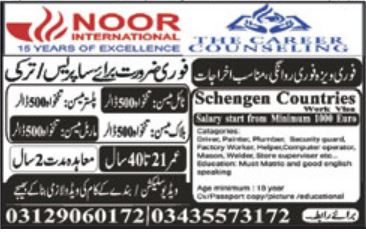 Apply at Noor International latest Overseas jobs in Labor and departments before closing date which is around July 21, 2022 or as per closing date in newspaper ad. Read complete ad online to know how to apply on latest Noor International job opportunities.