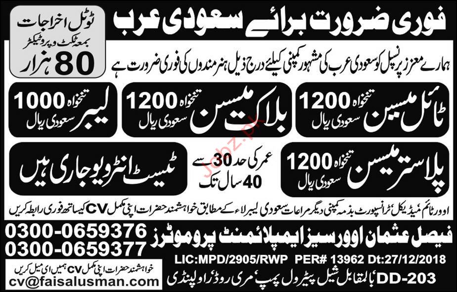 Latest Faisal Usman Overseas Employment Promoters Labor Posts Saudi Arabia 2025