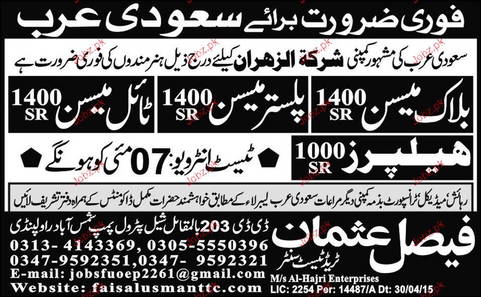 Apply as per details in job advertisement. Login to view further details of how to apply via https://www.jobz.pk online.