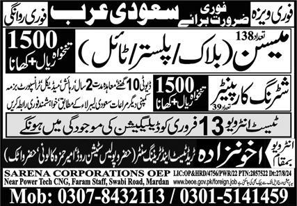 Block Mason & Plaster Mason Jobs 2025 in Saudi Arabia