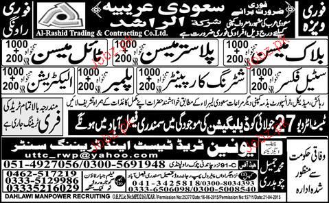 Block Mason, Plaster Mason, Plumbers Job Opportunity