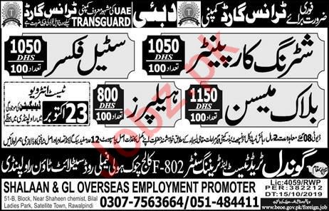 Block Mason & Shuttering Carpenter Jobs 2019 In UAE