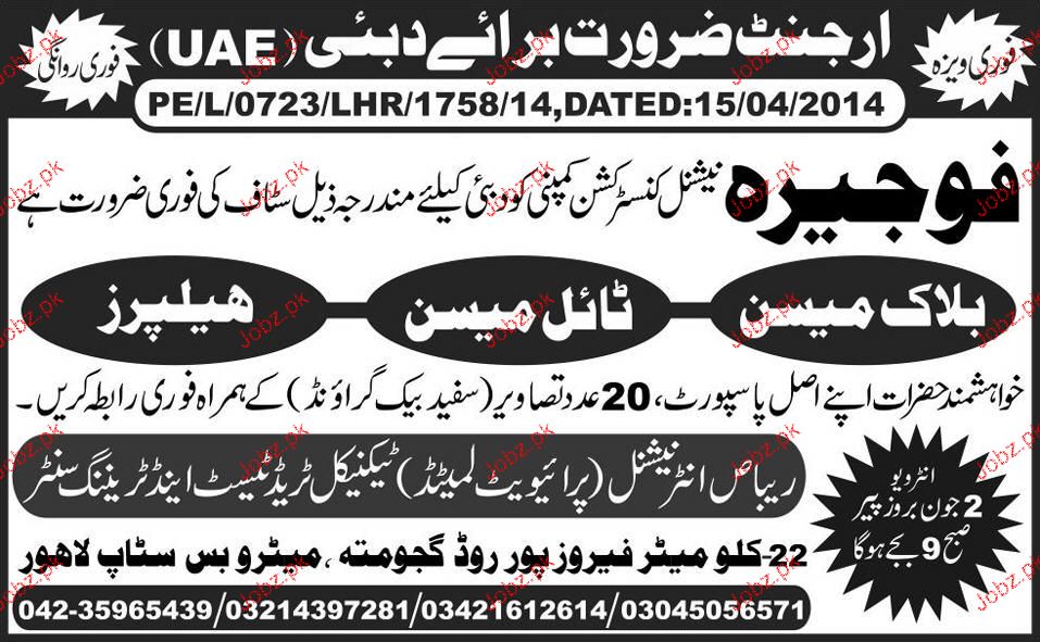 Apply as per details in job advertisement. Login to view further details of how to apply via https://www.jobz.pk online.