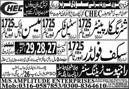 Rajput Training Center Riyadh, al khobar Saudi Arabia invites applications from eligible candidates for the post of scaffolder, steel fixer, block mason, shuttering carpenter, mason and tile mason as per advertisement of October 22, 2024 published in daily Express Newspaper. Educational qualifications required Matric, DAE and Intermediate etc.