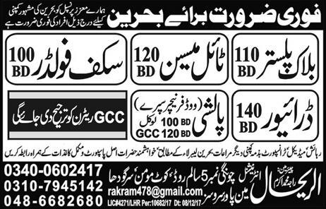 Block Plasters, Tile Mason, Scaffolders Job Opportunity