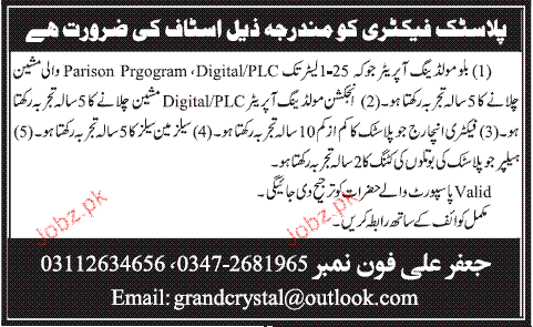 Apply as per details in job advertisement. Login to view further details of how to apply via https://www.jobz.pk online.