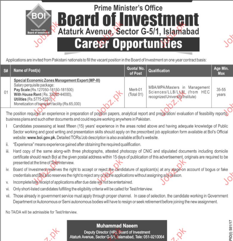 Apply as per details in job advertisement. Login to view further details of how to apply via https://www.jobz.pk online.