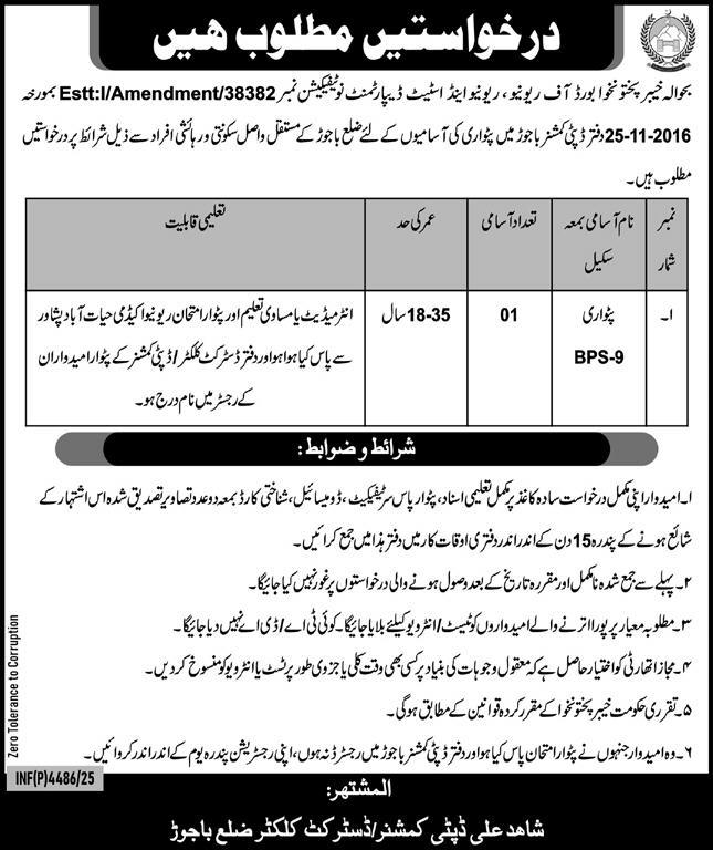 Board of Revenue invites applications for job positions advertised in daily Express dated 22 October 2025 for following vacancies in Bajaur, bajaur Khyber Pakhtunkhwa KPK Pakistan.
