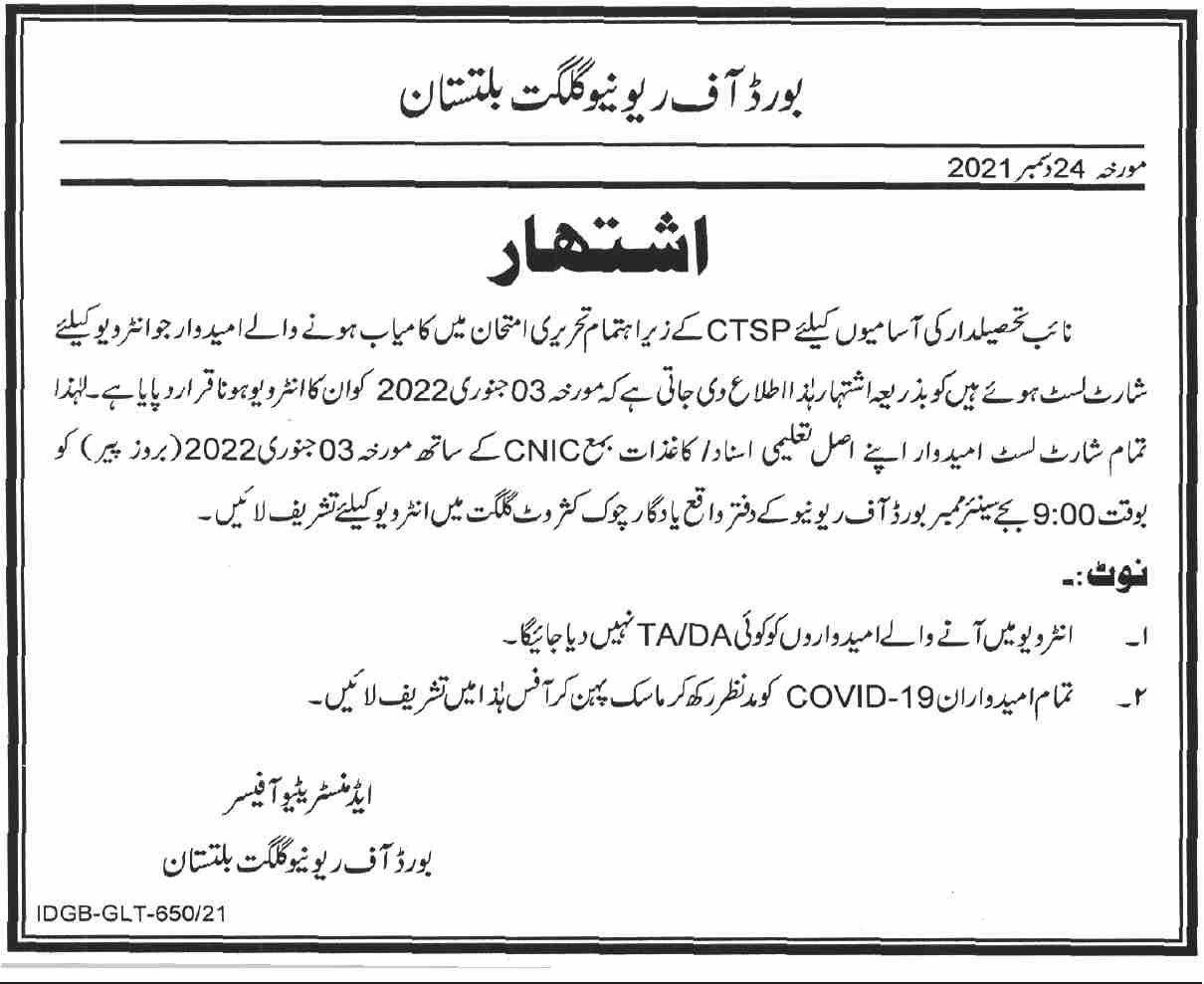 Board Of Revenue BOR Gilgit Baltistan Jobs 2022