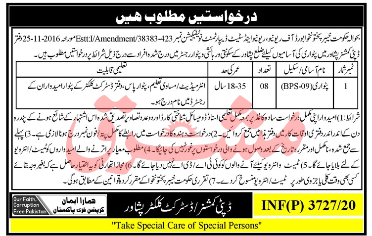 Board Of Revenue Jobs 2020 For Patwari In Peshawar KPK