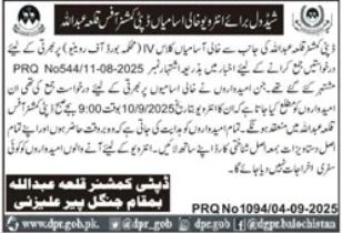 Board of Revenue is looking for candidates for following posts as per job advertisement published in daily Jang Newspaper of September 5, 2025 for location Killa Abdullah, killa abdullah Balochistan Pakistan: