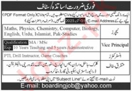 Boarding Institution Islamabad, islamabad Islamabad Pakistan invites applications from eligible candidates for the post of ltv driver, storeman, security guard, teacher, khakroob, vice principal, clerk, cook, electrician, mason, mess incharge, driver, mistry, sweeper, hostel warden, instrucotr, tandoorchi and htv driver as per advertisement of October 22, 2023 published in daily Jang Newspaper. Educational qualifications required Bachelor, Intermediate, Master, Middle and Matric etc.