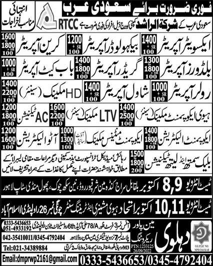 Dahlawi Manpower Recruiting latest Overseas Industrial jobs and others can be applied till 11 October 2022 or as per closing date in newspaper ad. Read complete ad online to know how to apply on latest Dahlawi Manpower Recruiting job opportunities. Salary varies from 172000. Overtime is allowed. Employer provides transport, medical and accommodation facility.