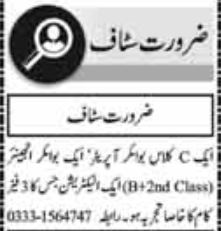 Preferred Education is DAE, Bachelor and Intermediate etc.
